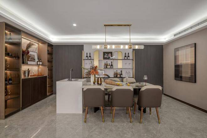 客餐厨一体化设计本就通透大气,辅以阳台延伸,家庭活动场域丰盈而充满弹性。