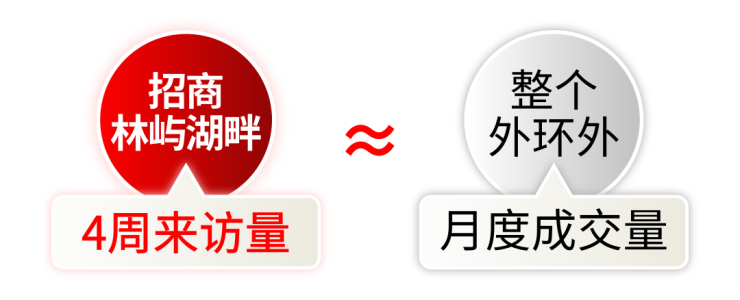 对比可见,林屿湖畔单盘四周的到访客户量级,已逼近外环外整体市场的月度成交量级。