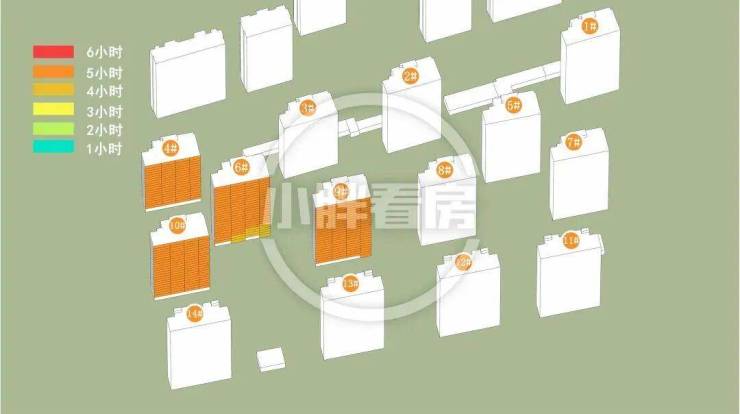10#采光优异几乎不存在遮挡。4#6#中低层受遮挡。9#低层受遮挡。就具体遮挡时间而言,4#主要在上午受6#遮挡。6#主要在上午和下午受9#10#遮挡。9#主要在上午受12#遮挡。