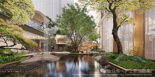 在社区内部,遵循豫园山脉、水脉,以现代化手法表达,形成立体的山水园林景观,包括立体的山林、引水入园、庭荫树影。