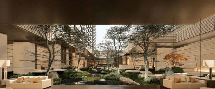 三层立体空间,高效与私密兼得:地下层为城市通行效率层,规划酒店式中央车站落客设计,搭配地铁直连地库,提升归家体面与通勤效率;地面层为全维交互功能底盘,打造会所、泛会所架空层,同步推进社区外城市水岸一体化打造(申报中),实现城市与社区的柔性过渡;生活层为纯粹居住私域,通过全域抬板隔绝城市喧嚣,搭配立体景观,营造度假式居住体验。