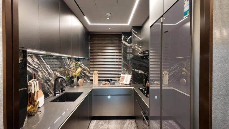 The U-shaped kitchen borrowed part of the bay window, so it has a longer depth. However, compared with products of the same area, its width is still a bit smaller.
