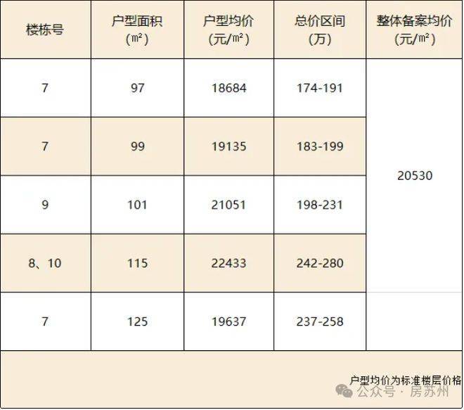 备案单价区间约17867-24228元/m²,备案总价约174-280万;其中7#为毛坯交付,其余楼栋为精装交付。