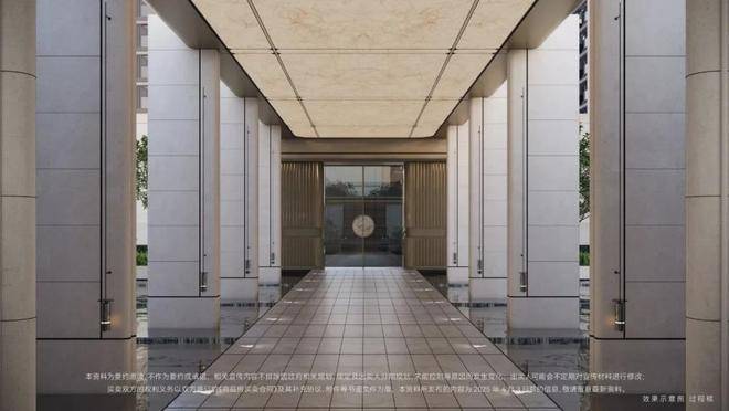 弧形石材工艺因其造价高、耗料多而闻名,而招商序从门庭、游廊、转换厅、风雨连廊到下沉式庭院,一以贯之的弧形石材,形成了统一的设计语言,营造视觉上的柔和高级感,招商序将这种传统豪宅的设计手法应用到了700万级的产品之上,真的是降维打击。