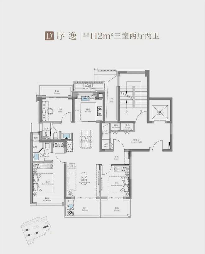 建面约114㎡3房2卫户型