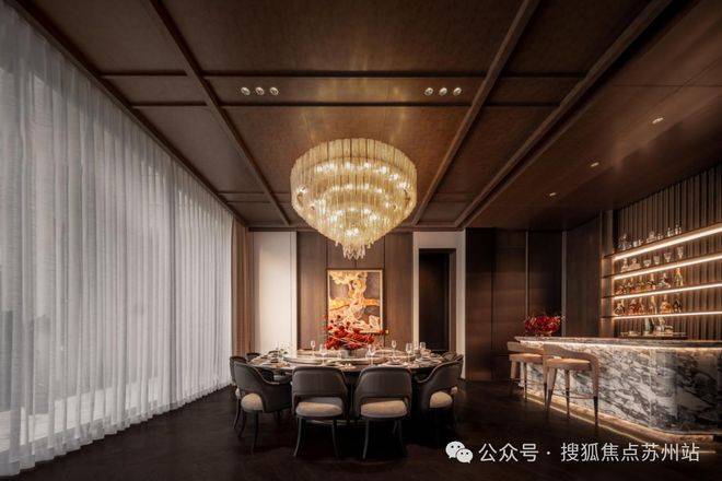 而业主专享的私宴厅则是将“尊贵感”说到了极致!臻选奢石营造雅致屏风,墙上大师匠呈繁花艺作,定制灯具璀璨生辉,摩登意蕴充盈其中,匹配大人物品位。除了敞阔的就餐空间,还独立配置吧台、品茗休息区。暮色四合,华灯初上,谈笑风生中展现风雅从容,觥筹交错间皆是繁华丰茂。