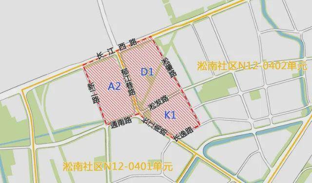 由通南路、郁江巷路、长江南路、淞发路划分为了五个象限,将以轨道交通建设为契机,围绕两个地铁站开发TOD模式,打造高品质综合社区。
