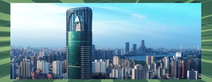 建筑主体外立面以玻璃及金属、石材横向线条为主,玻璃材质与精致的横向线条勾勒出水面拨动的轻盈效果,象征着江水的流动与自然的柔和,外立面独特的“飞翼”设计,在不影响采光日照的情况下,勾勒钱塘江水波澜的效果,赋予建筑形体似“水”的动感。