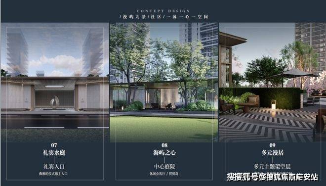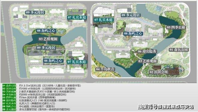 住宅不仅仅是建筑,而是能提供亲情邻里交流的场所,有家园的氛围、能够营造静谧式花园般的栖息之所,因此在小区景观设计上围绕“3L+”设计理念,通过3个岛屿社区、1条活力滨水生活带、1座森养乐活公园加上1个海岛度假泛会所,呈现出全景式多维立体社交型景观社区,营造具有度假感、品质感、季节感的漫屿九景: