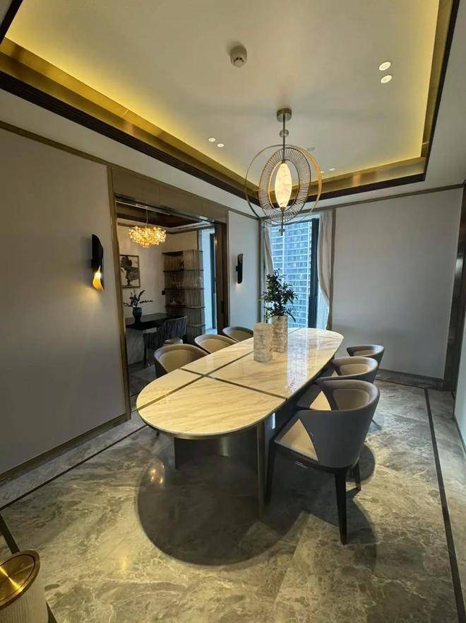 会所墙面运用大理石,木质元素,金属元素搭配以中性色彩白色、米色为主,营造出简洁、大气的氛围感;还有深色的大理石和木质元素作为点缀,增加了空间的稳重感和高级感。可以预见的是,这是未来业主都愿意多加停留的一个轻松氛围空间~