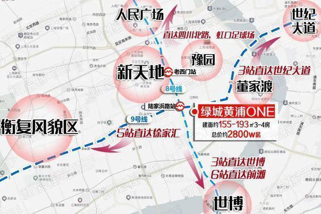 半径约3-5km覆盖重点商圈包括人民广场、南京西路、新天地、外滩、豫园、陆家嘴、徐家汇、静安寺等上海市地标性区域,未来纵享全市顶层城市配套:商业、轨交、教育及医疗资源满分配置!