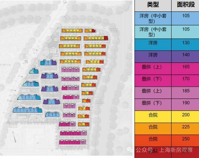 根据流传出来的楼栋平面图来看,项目拟建9栋总高6层的洋房,9栋总高4层的叠墅和17栋联排以及相关的配套施设,总计可售房源约438套