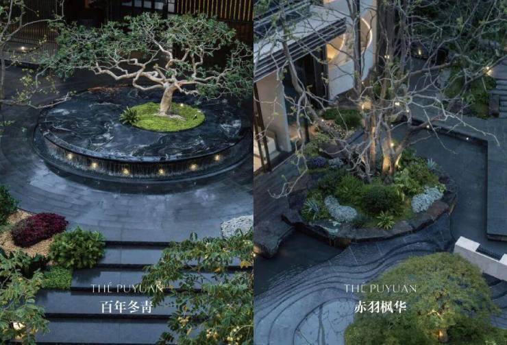 隐奢立面园林 : 铝板 + 陶板 + 玻璃幕墙 高端立面,10 米垂直挑空立体山水园林,东方隐奢美学