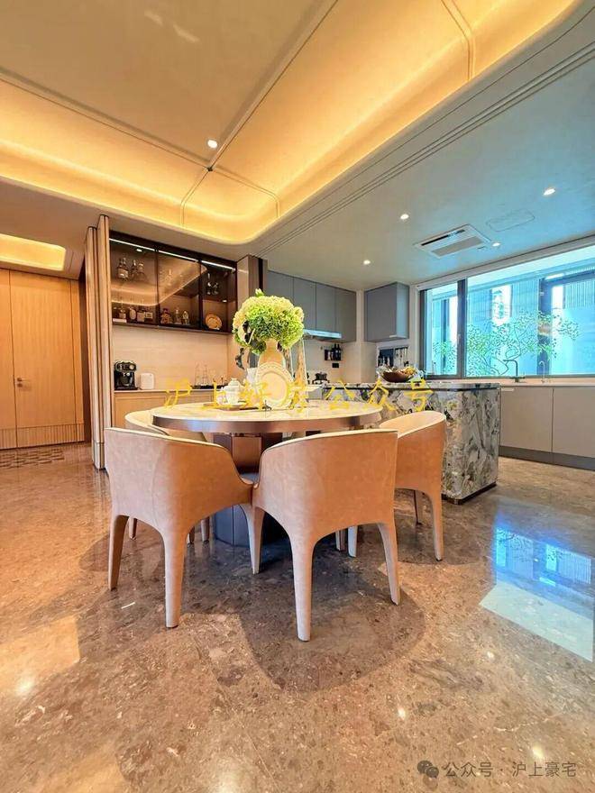 整体约3.3米的层高,垂直空间带来了视觉上的无限延伸,南向开间面宽达到了约15.8米,空间感强烈,采光通风上佳。