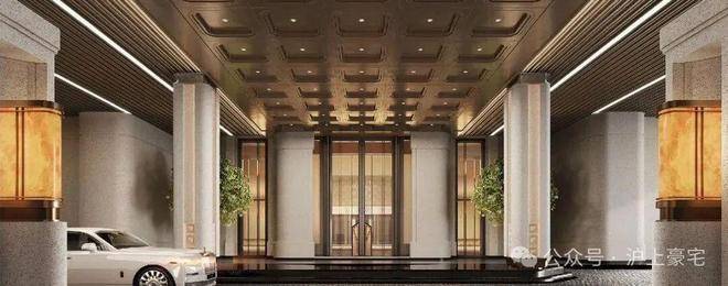 取意豫园中式园韵,打造约 99 米隐奢入口空间结合独立的车马院,风雨廊道与人车分流独立双入口,带来尊贵的归家体验。