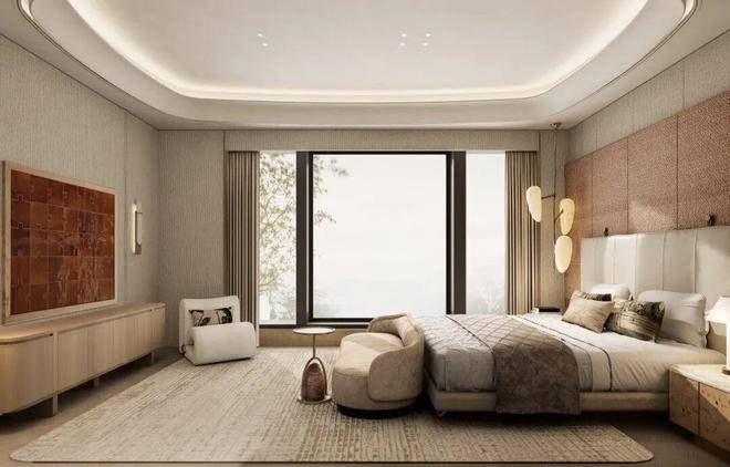 主卧建面约25㎡,自成一方小天地。除了设计有干湿分离的卫浴空间,还特别打造了步入式衣帽间,满足主人的“收藏欲”;加之南北通透的布局,连接双联阳台,阳光浸润生活,清风鲜活呼吸。南向约6.7m双联阳台+270°无敌视野,大尺度通透观景窗,构筑巨幕瞰景视野,窗外风景即是日常的背景画。屋顶瞰景平台,随时打卡社区风景与兰香湖波光。