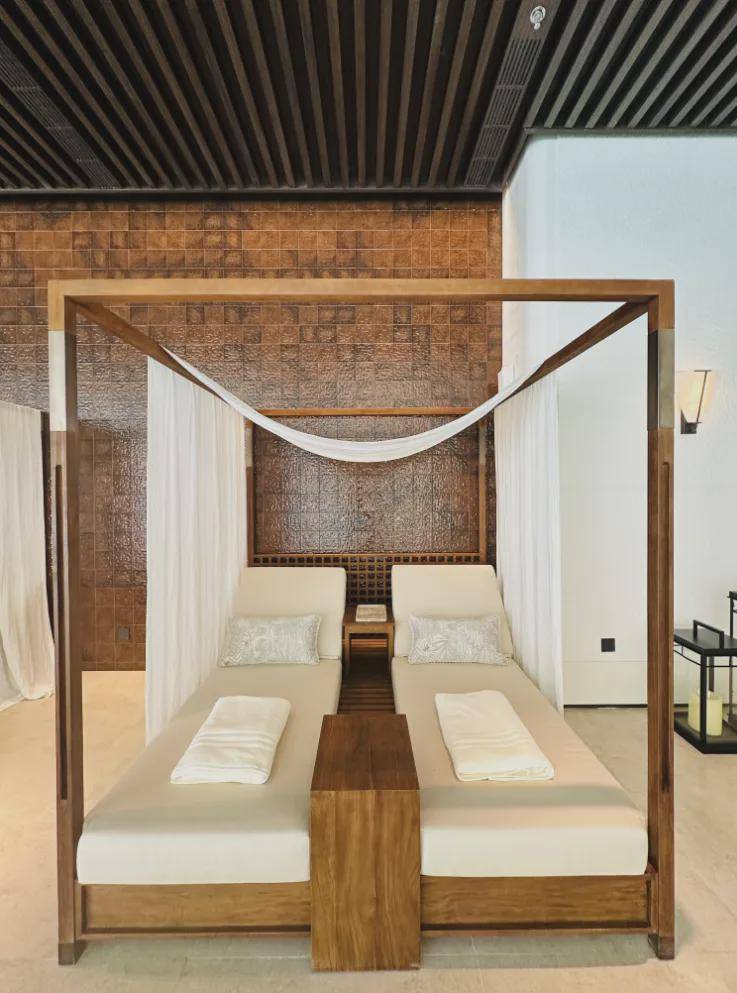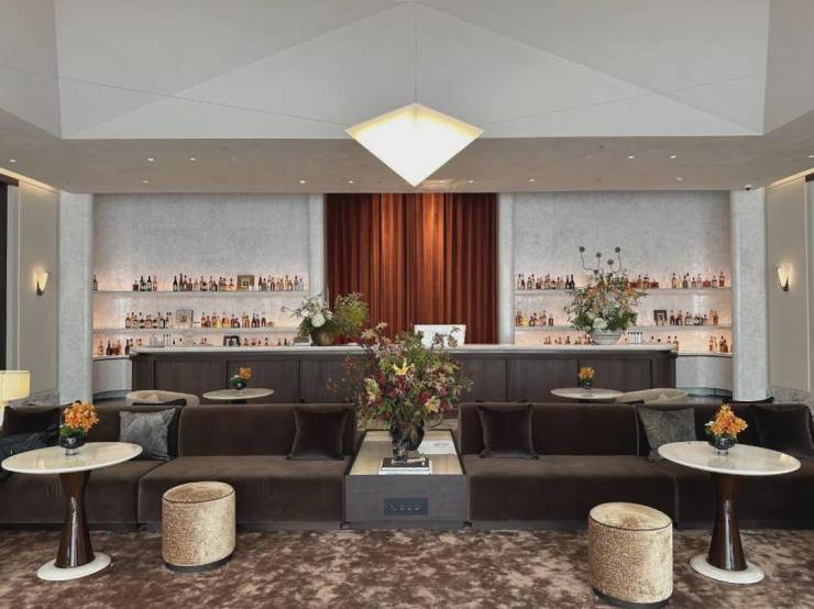 红酒雪茄厅采用了浅色与胡桃木的搭配,再加上拱形设计和光影艺术品,氛围感丝毫不亚于世界上的顶奢酒店。