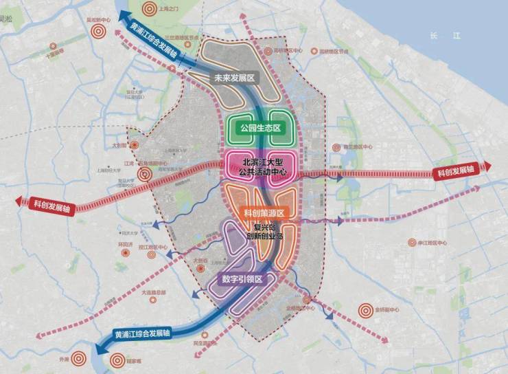 随着《上海市黄浦江滨江中北段专项规划》正式公布,确定以复兴岛为核心,联动两岸形成科创策源区;南部滨江数字引领区提升在线经济产业能级;中北部公园生态区强化生态辐射效应;北部片区为未来发展区。