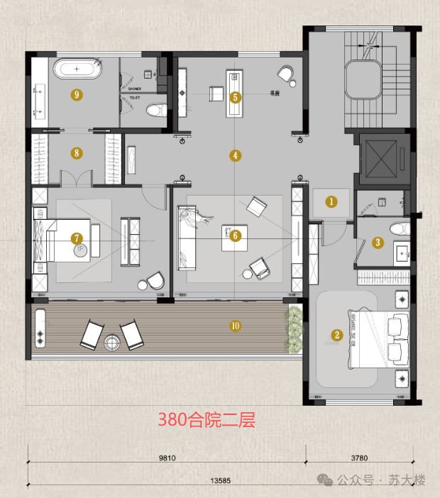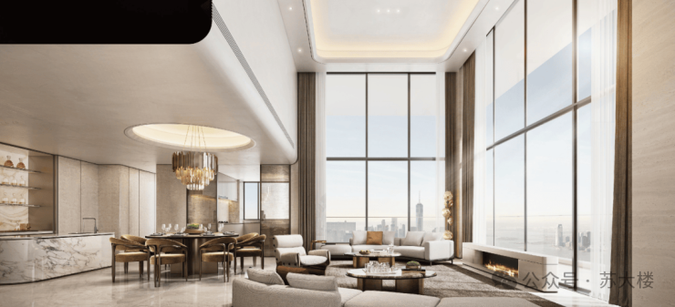 289m²户型,LDKG一体化,中西厨岛台,回游动线,客厅270观景,双次卧套房,客厅双层挑空,超10米客餐空间,超空中花园露台。(注:网传户型过程稿)