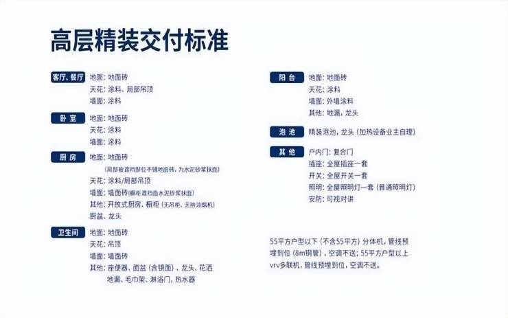 硬装交付:硬装交付就是房子交房时是带装修的,可为业主节省大量的时间和精力,装修做到把地板砖、墙面、房顶,甚至厨房、卫生间的配套都做好,但基本不会配置活动家具家电。