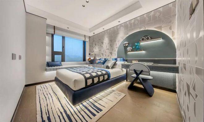 主卧套房设计,贯穿南北,自带卫生间和衣帽间,还有大面积飘窗,舒适度和私密性双爆表!
