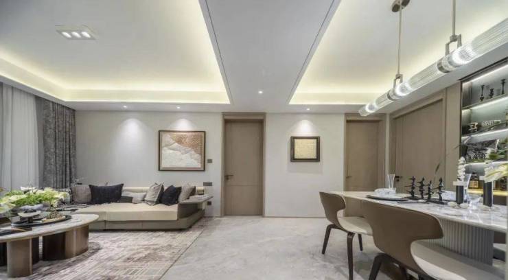 客餐厅一体化,南连同尺度宽景阳台,将生活的奢度打开。金茂定制壁布或墙纸交标结合 芬迪白岩板客厅背景墙,地面采用马可波罗(或同等品牌)大板砖,以定制设计感提升空间立体感。阳台外窗采用 大面积窗墙比,使得室内整体采光面、亮度、通风效果得到提升。
