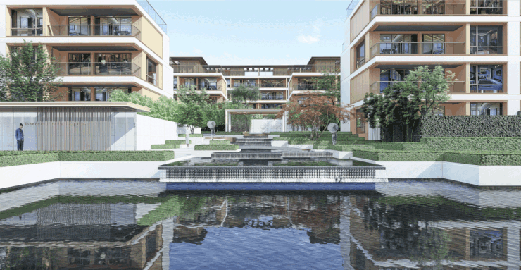 有背山必须傍水,从小区正门的独立高端会所进入园区后,之江壹品特意作了退进式梯度入口,中心引入意式跌水水景;从两侧围着水景、顺着山势的缓坡台阶漫步往上,在跌水的终端是卡洛斯卡帕式的雕塑出水口和一棵中型落叶乔木作纪念性空间;✅之江壹品(西湖逸庐)售楼处电话:400-9688-923✅︎✅︎✅
