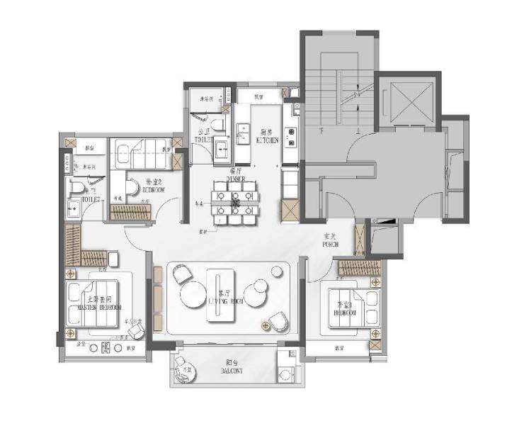 上海宝山江湾金茂府售楼处电话☎:400-8123-664(预约看房热线)相比126㎡户型,144㎡户型在设计上采用大面积方形厨房,为家庭成员之间的互动提供了充足空间;而超大横厅设计的加持使得动区更加宽敞明亮,足以容纳全家人的各种爱好。