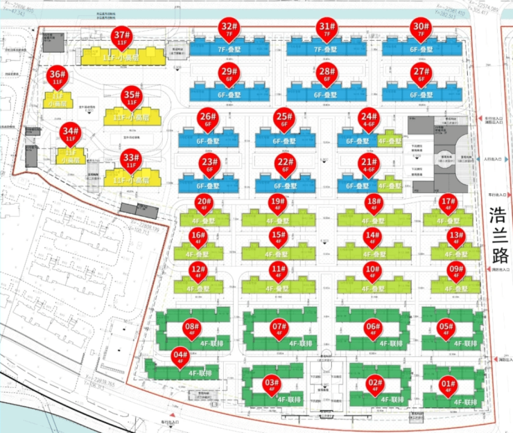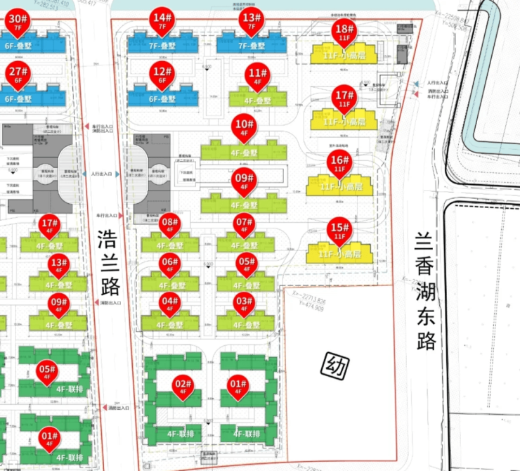 02-09地块,占地面积约9.9万方,容积率1.01,由5幢11F小高层住宅、32幢4-7F多层住宅以及若干社区配套用房组成,共计规划约656套可售住宅;
