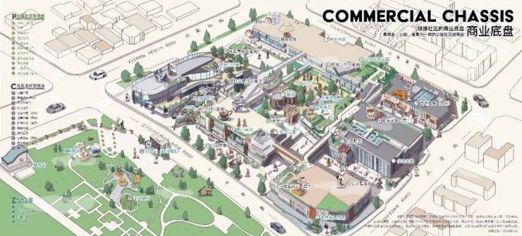 商业和中兴公园手绘图,仅供参考,以实际交付为准