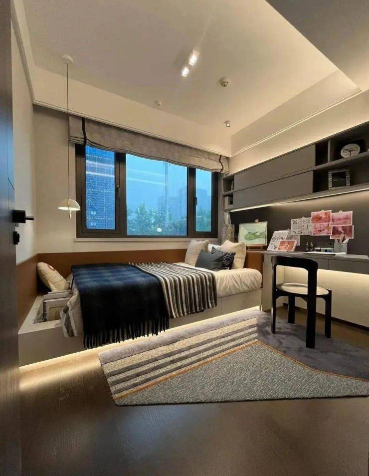 其他的卧室空间同样温馨舒适又大气,住在里面没有一点拥挤的感觉
