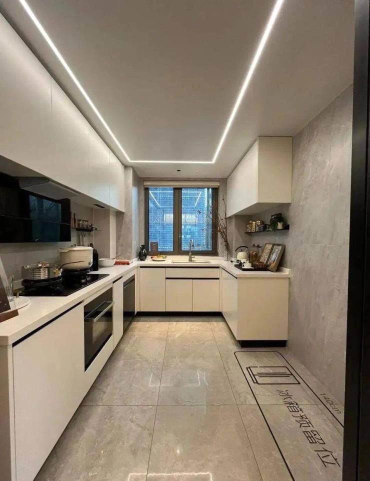 U型厨房,空间足够;做推拉门,打开和餐厅空间融为一体,关上之后是独立的空间,热爱烹饪的人可以尽情享受