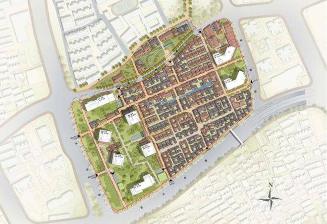 方案中规划的昼锦路目前还未东延至此,未来建成后,项目内将开辟昼锦路和方浜中路之间的公共绿地以及城市开放空间,着力打造成富有海派文化底蕴的历史风貌保护和城市更新经典片区。