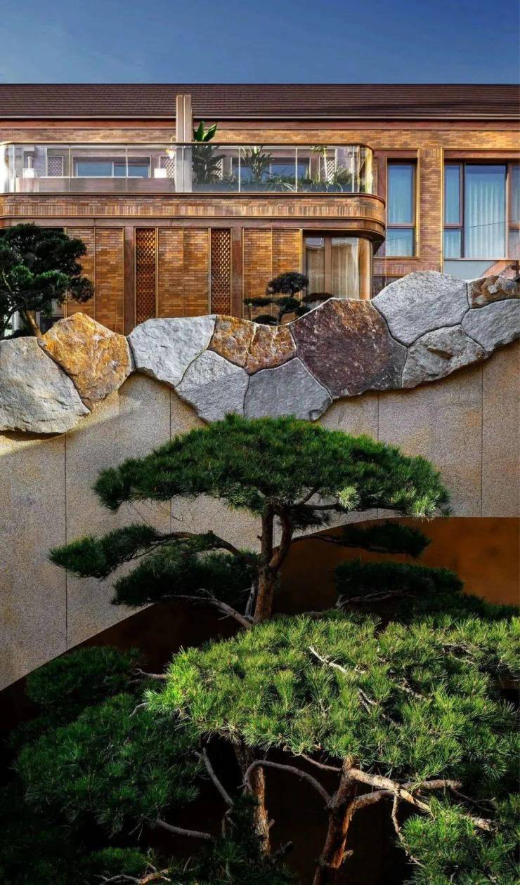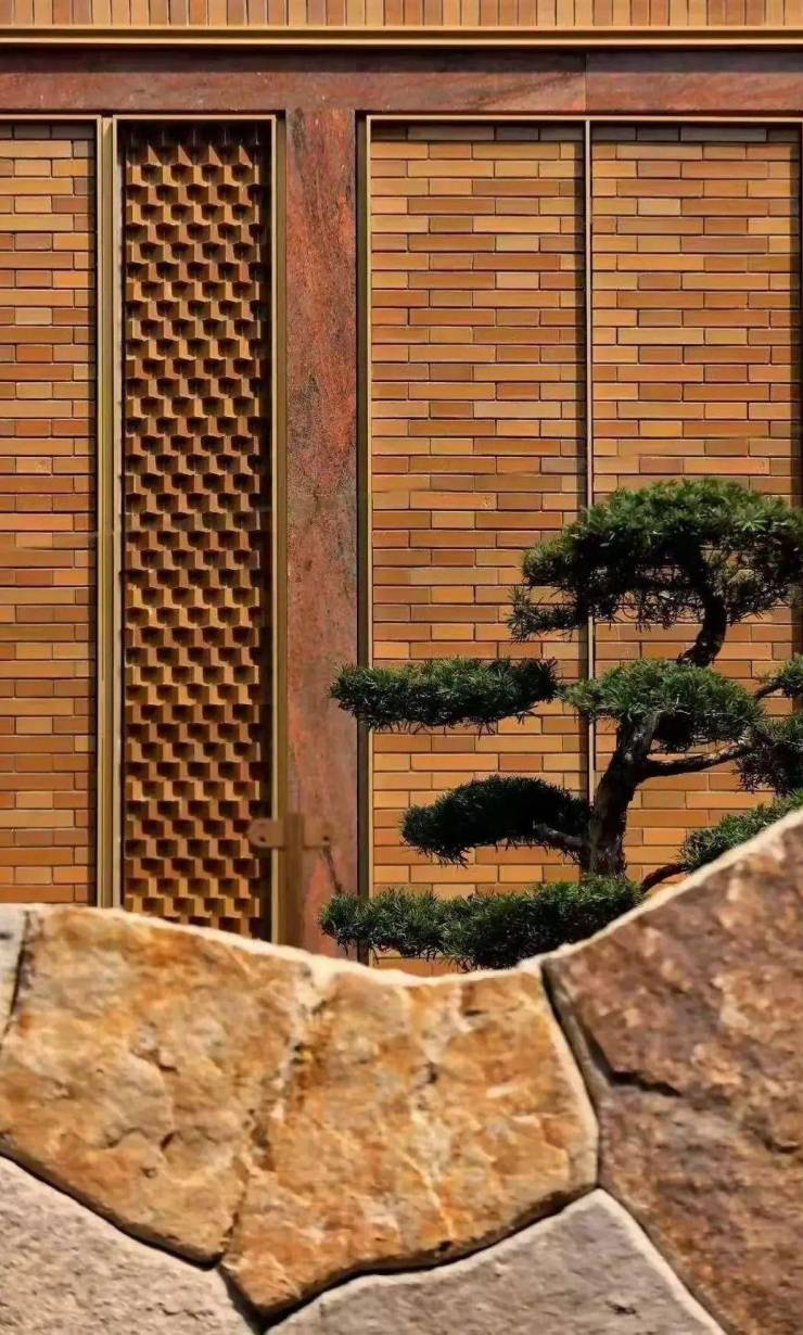 砖,是建筑的“细胞”,也是建筑的起点和载体。海派风韵,从找到合适的红砖开始。项目精选宜兴五色泥矿,经过多轮调配、手工塑形、多轮打样与严格烧制,只为复刻百年红砖色彩与质感;并以非遗工艺精研砖石拼砌,灵活运用清水红砖、老砖、釉面砖等砖材,融合8种拼接技艺,将187种砖型呈现于建筑立面之上。无论是园林里从名山石场中甄选并开采雕琢的原石,还是庭院中自万亩松林中精选而出的象征家族传承的子母松,不惜成本的寻觅与雕琢,只为以极致的品质与匠心,铸就经得起时光淬炼的经典。