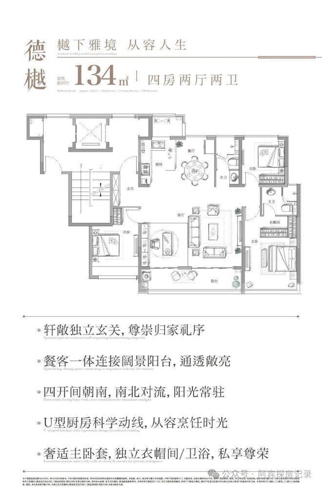 项目产品的户型面积是104平三房、134平4房、148平大四房、212平4房3卫组成的,整个项目的定位偏改善