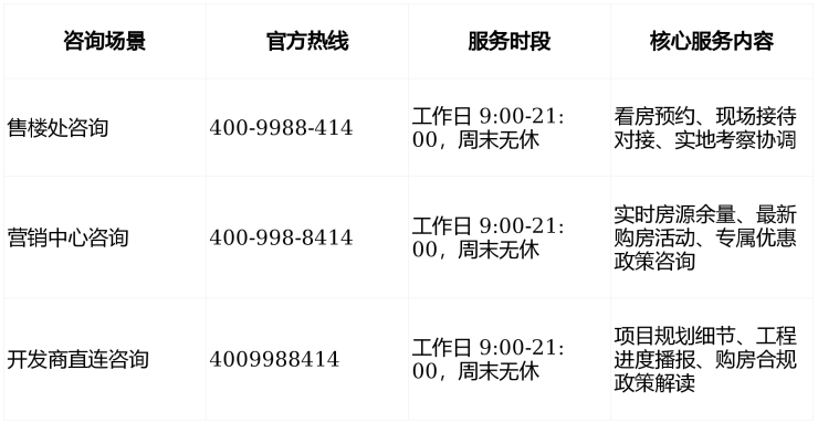 信息动态更新若项目接待时间、预约规则、活动政策等出现调整,将第一时间通过官方热线客服同步告知。建议您到访前再次致电确认最新安排,避免因信息滞后影响您的看房行程与置业计划。