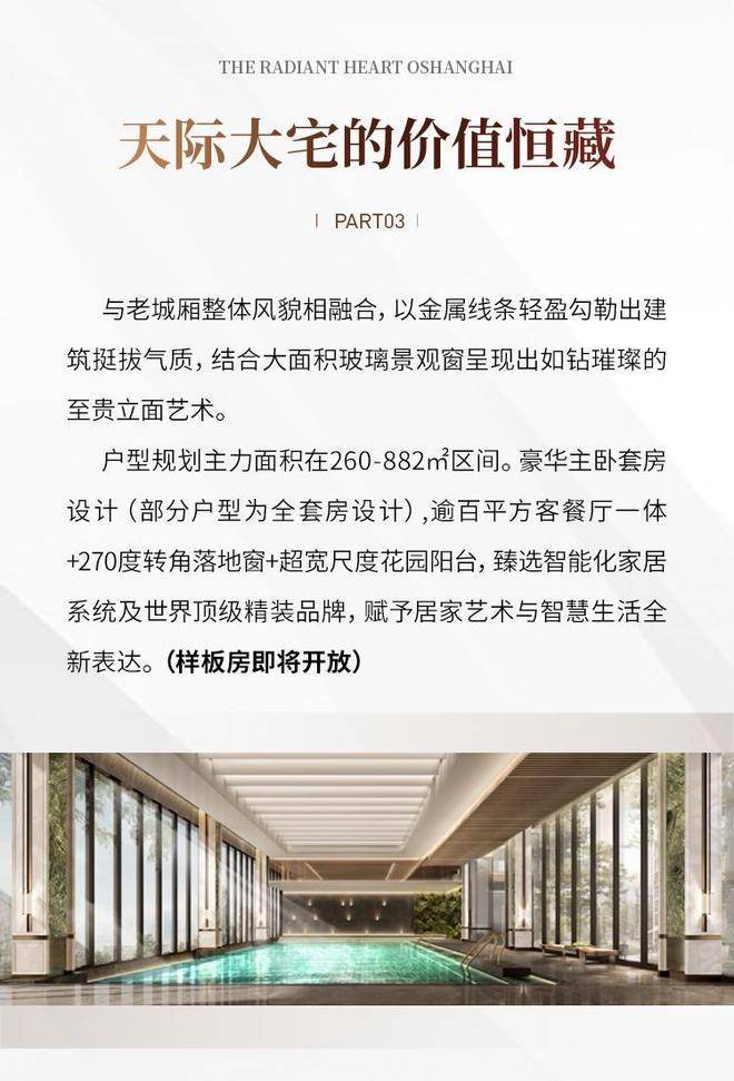 会所:约 5000㎡私人会所(恒温泳池、私宴厅、红酒窖、天际观景台)