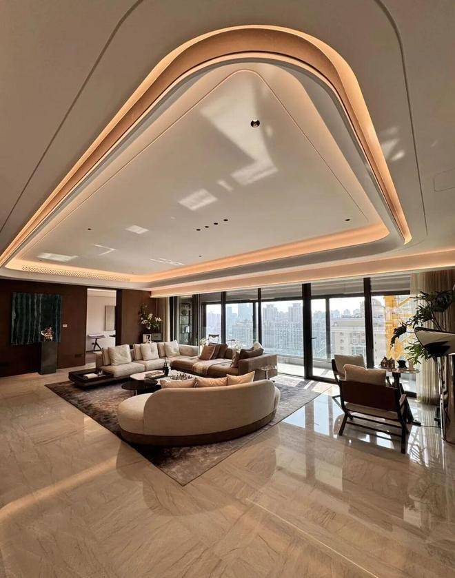硬装:葡萄牙米黄石材 + 古铜金属线条,全屋大理石