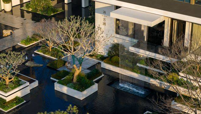 往里走,您会踏入一个立体的、全境洄游的园林。下沉庭院、镜面水院、阳光草坪,以多维垂直的角度,诉说着生活与风景的立体交融。