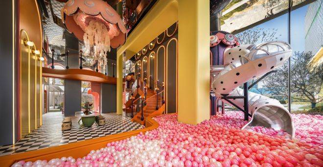 An ocean themed children's playground with a height of about 7.2 meters has been designed inside the elevated level, and thoughtful rest booths have been prepared for parents. There is also a water staircase book bar that traces its origins to Anaya. It is divided into adult and child zones, allowing the spiritual dwelling and children's laughter to coexist without disturbing each other。