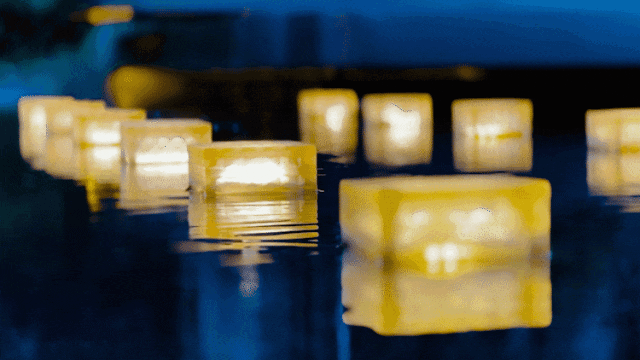 城市的喧嚣在这一隅园林中被沉淀,天色低垂,一池澄澈水面映衬着水乡的灯火通明,设计将夜幕中的灯火点缀在景池中,如江南繁华初绽,繁星摇曳。
