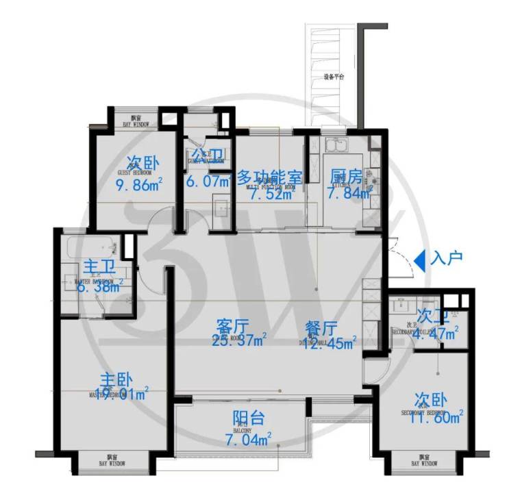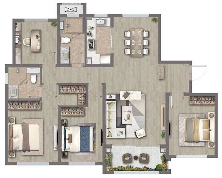 刚需房就要考虑三代人同住或者一家四口居住对房间数量的要求,这样考虑的话,房子最少应该是三居室,那89㎡的紧凑型小三房就更合适。