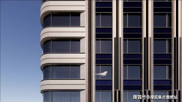 跳脱同质化的“黑白灰”外立面,万科中興傲舍住宅立面颜色以珍珠蓝为核心,搭配香槟金、海派红,高亮的色彩在一群黑白灰的建筑中,昭示性极强,是独一份的“国际脸”。