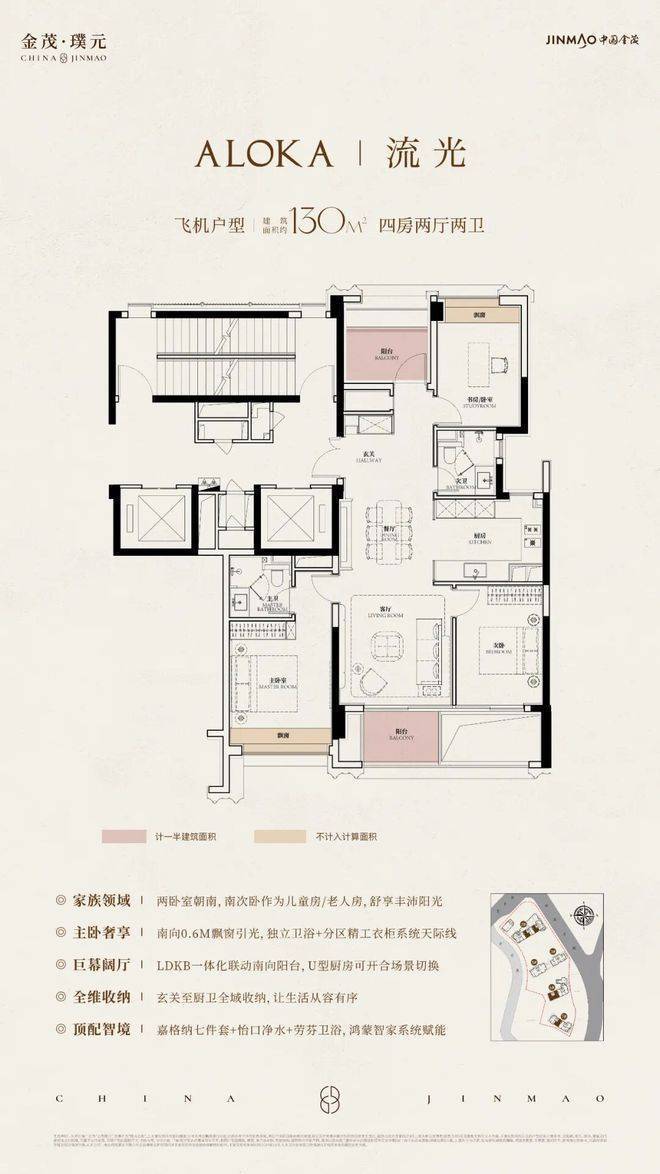 在建面约130m²户型中,金茂把每一寸面积都榨出了极致价值!