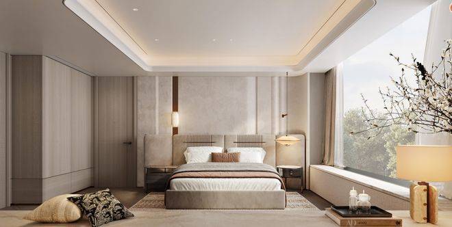 二期还延续了270°全景舱主套的设计,主套开间达到约3.5米,配置有独立卫浴、豪华衣帽间,关起门来就是一个小家。