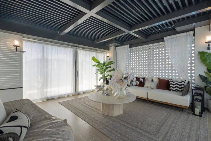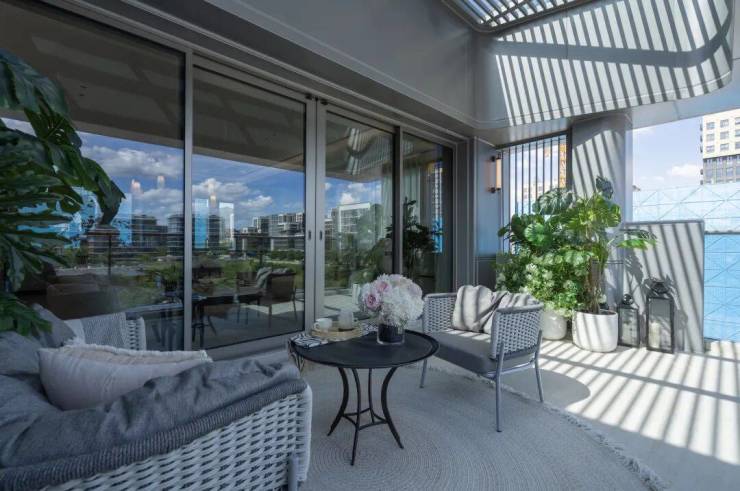 其中,露台尺度超大,小胖很喜欢这里。在这,可以喝喝茶,看看书,和朋友小聚聊聊天;露天部分可以种种花草,夜间看看星空……