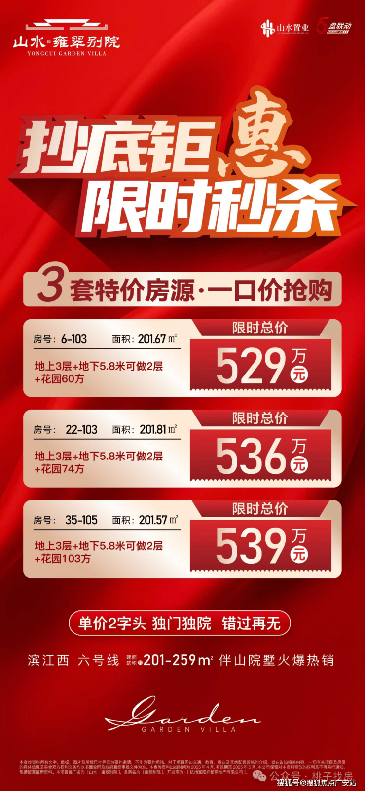 当前合院总价486-625万(含双车位),首付100万起,较滨江同类产品低30%78