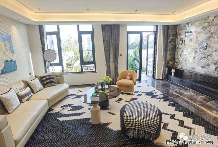 作为富阳银湖科技城稀缺的低密院墅,项目容积率仅1.01,由45幢合院与5幢洋房组成,主打201-259㎡新中式合院产品,以"独门独院+五层空间"重构当代墅居范式12。开发商采用太行山老石皮、罗汉松等珍稀材质打造宋韵园林,地下室挑高5.8米可改造为多功能空间