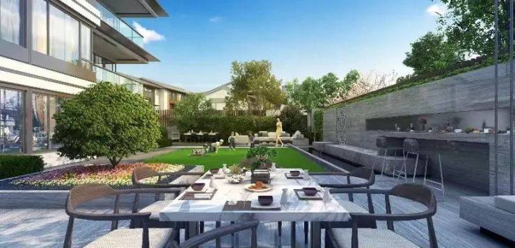一楼除了有一个南向花园之外,北向还配有一个小菜园,业主在闲暇之际可以种种菜,重拾童年乐趣。此外,龙井院子还配置私家直达电梯,可在地下二层、地下一层、一层、四层停驻,上叠的业主也能通过电梯,直达入户,满足业主对私密性的要求。