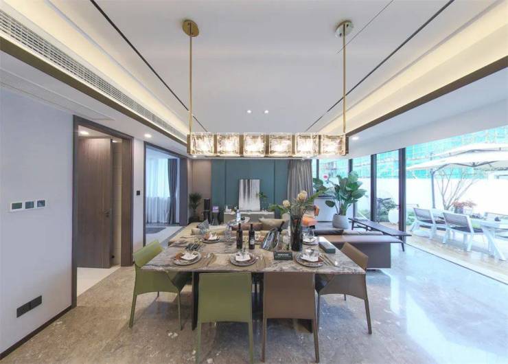 外立面以简约利落的线条,勾勒出动静相宜的现代感,质感稳重的石材、精致灵动的熏瓦,更增添了几分稳固质感。街巷静幽的立体庭院,配合大面积的落地窗,室内空间更通透;屋顶在中式传统建筑形制基础上做了美化,延续传统文化与坚固密实两不误。